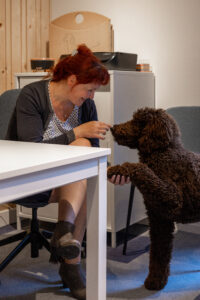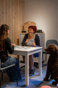 Via gesprek, creatieve werkvormen, opstellingen of met hulphond Odie.