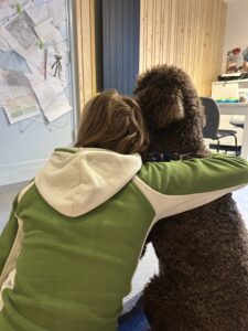 Odie helpt daarbij, met zijn zachte aanwezigheid. Steeds klaar voor een knuffel.